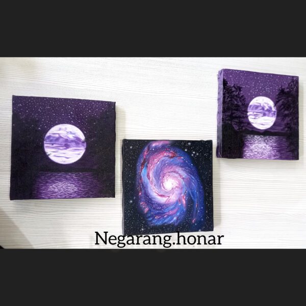 قیمت اصلی: 10,000,000 تومان بود.9,500,000 تومانقیمت فعلی: 9,500,000 تومان.تابلو نقاشی، رنگ روغن، ست سه تکه تابلو ماه و کهکشان