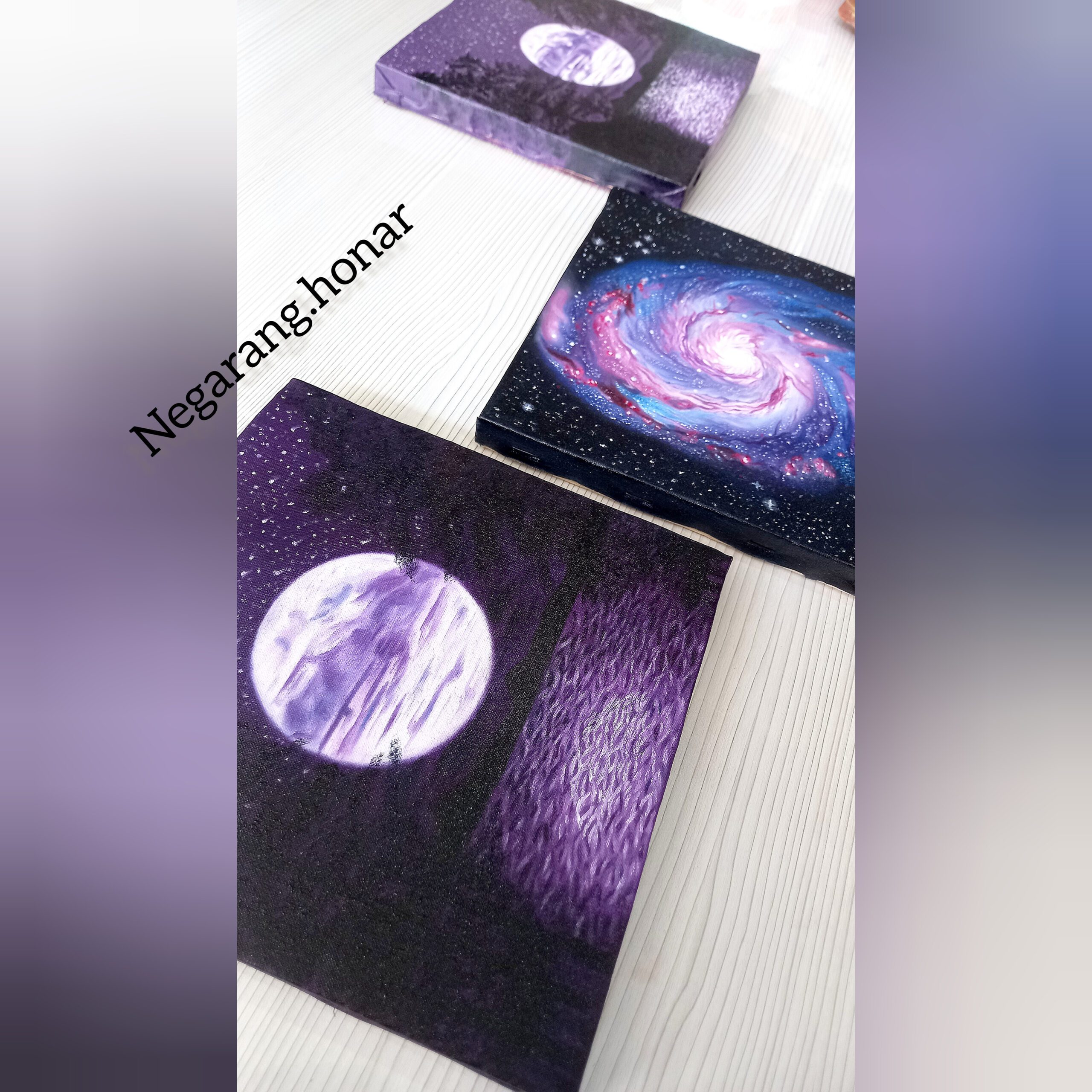 سه تکه تابلو شامل دوعدد تابلوی ماه و یک عدد تابلوی کهکشان هست و تماما کار دست هستن.