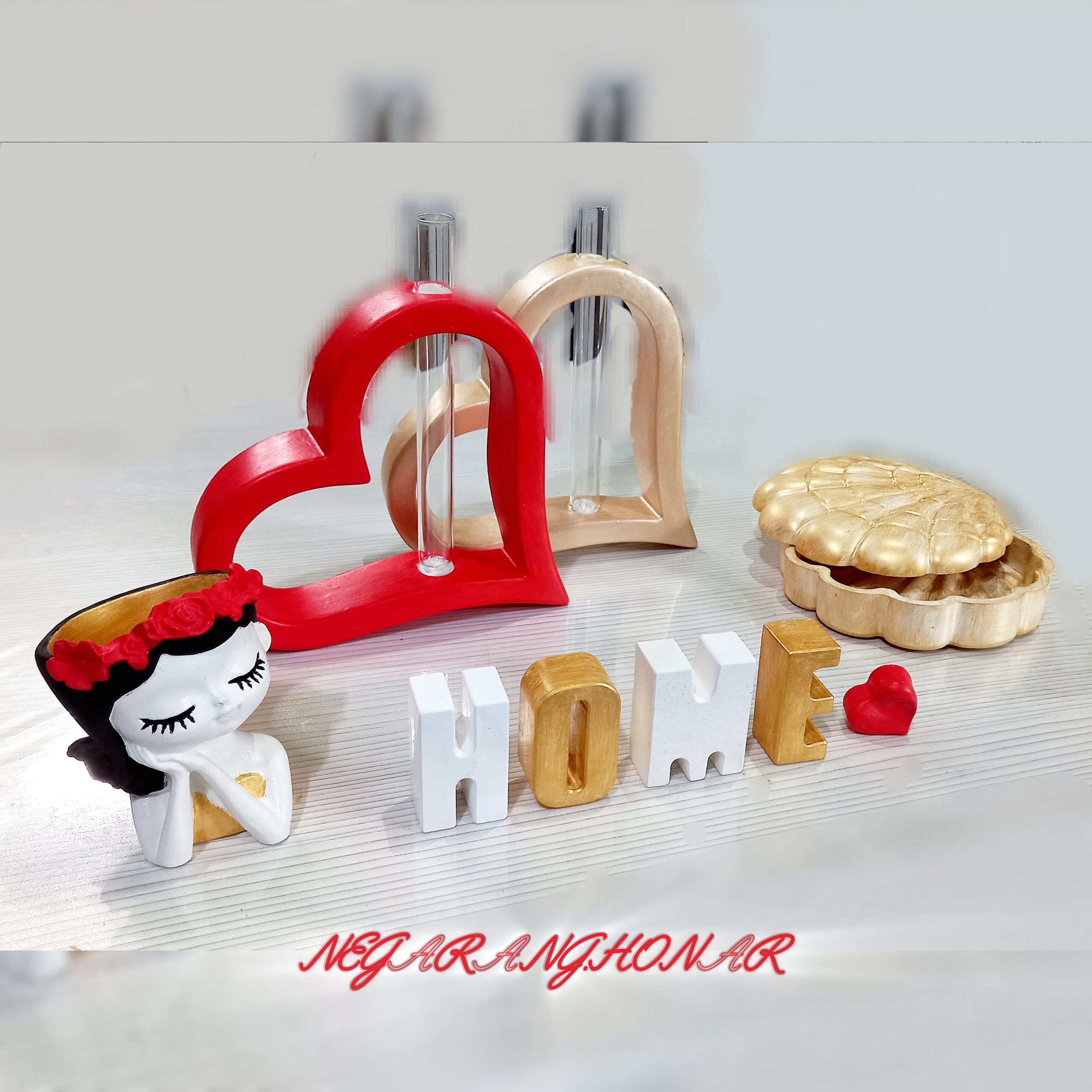 ست دکوری سنگی ، ست گلدان و جاشمعی، استند اسم، دکوری رومانتیک