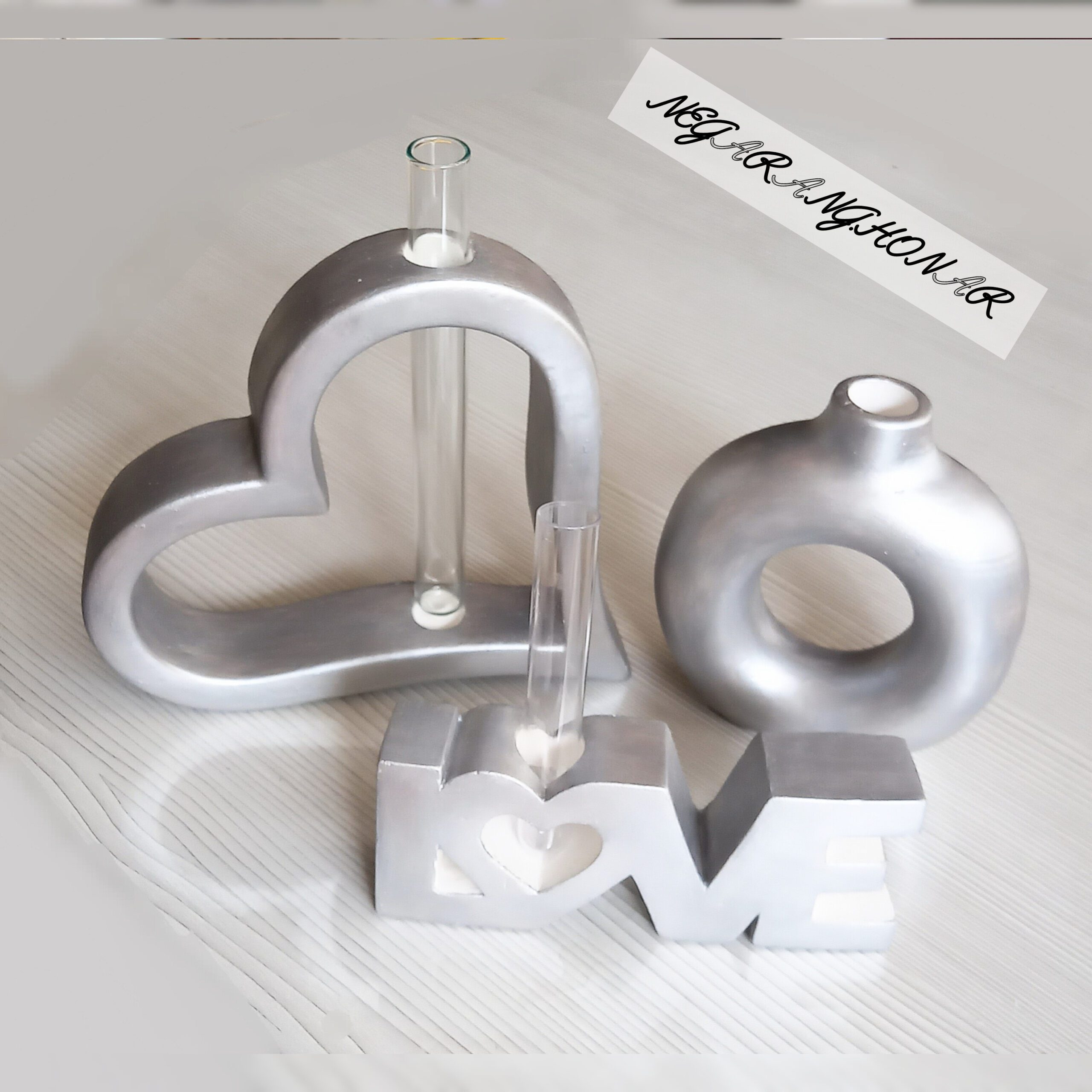 ست دکوری سنگی ، ست گلدان و جاشمعی، استند اسم، دکوری رومانتیک